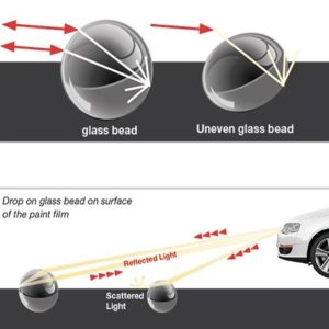 Through the optical phenomenon, a perfect glass beads reflects the light coming from vehicle headlights to the driver.